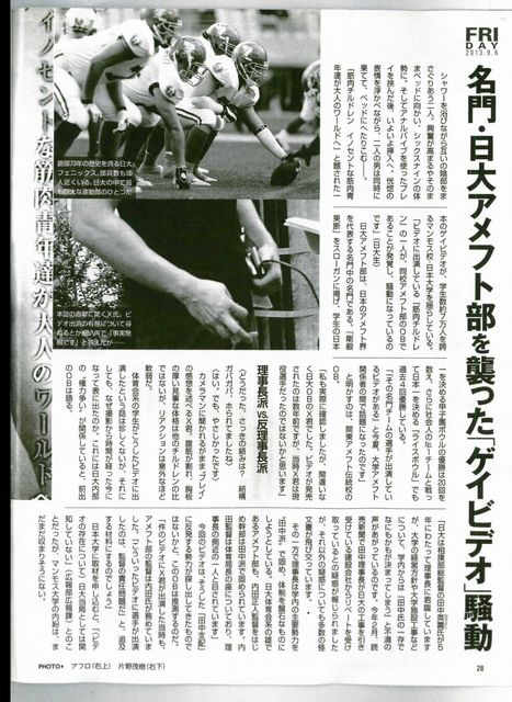 フライデーが2013年に「名門・日大アメフト部を襲った『ゲイビデオ』騒動」として特集を組んでいた。X氏と名前は伏せられているが、「日大OBのX君でした」という証言も書かれている。